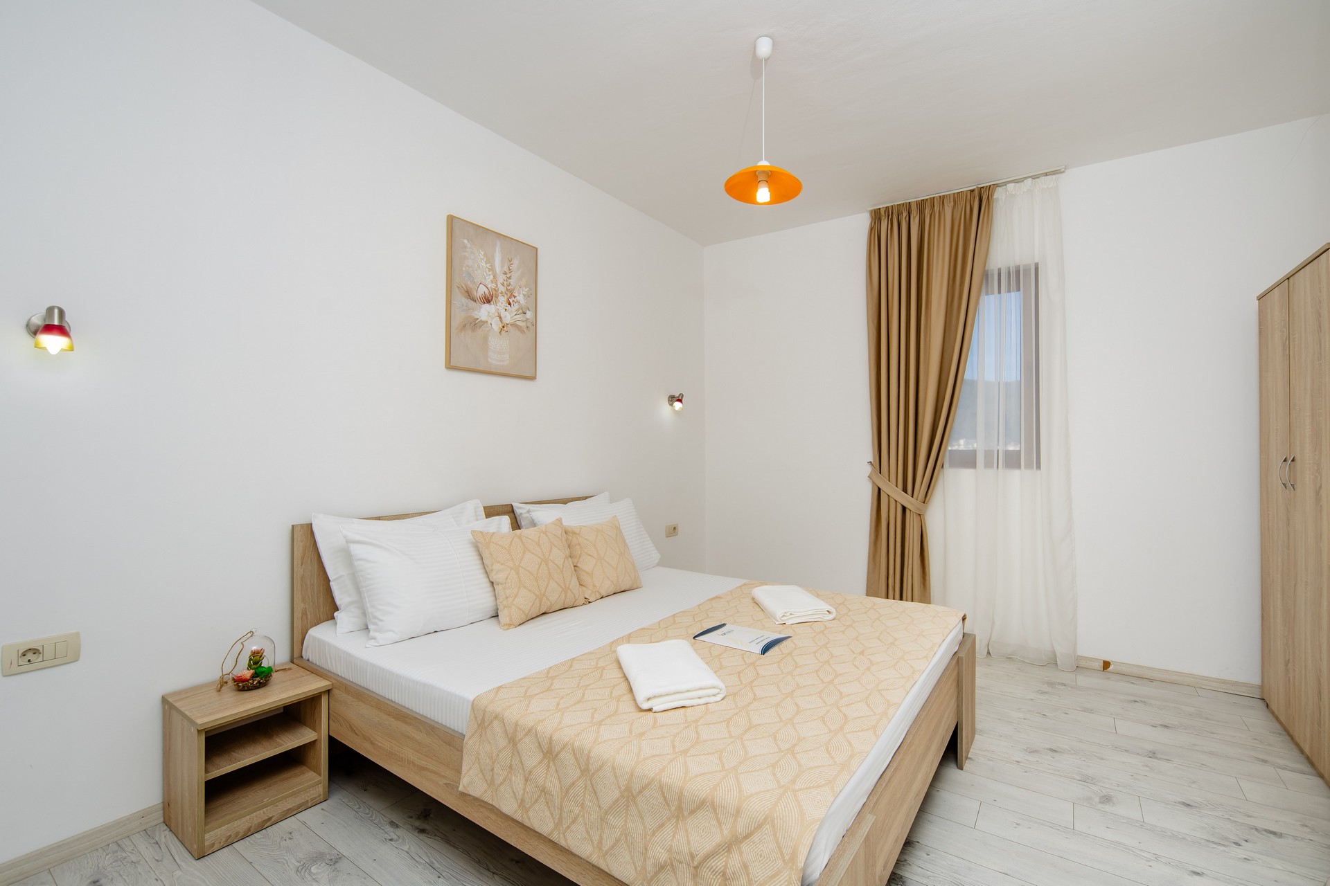 Apartman sa jednom spavaćom sobom i balkonom ima kapacitet za četiri osobe. Sadrži bračni krevet i sofu za dvije osobe u dnevnom boravku. Dječiji krevetić je dostupan na zahtjev. Ima potpuno opremljenu kuhinju sa stolom i stolicama, pločom za kuvanje, kuvalom za vodu, kuhinjskim priborom i frižiderom sa zamrzivačem. Kupatilo sadrži tuš, fen i mašinu za pranje veša. Apartman je klimatizovan, a gostima su na raspolaganju bežični internet, televizor sa satelitskim kanalima, pegla/daska za peglanje, sef i lift. Kvadratura: 47m2.