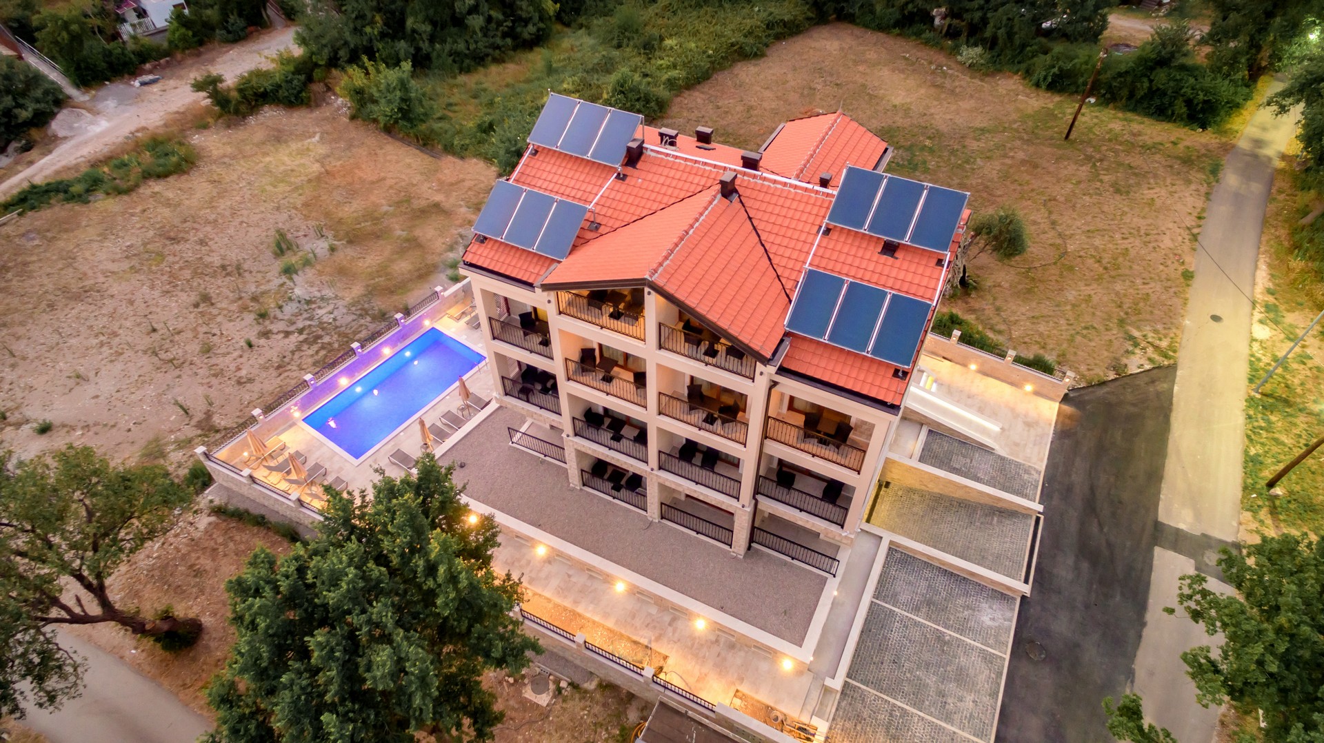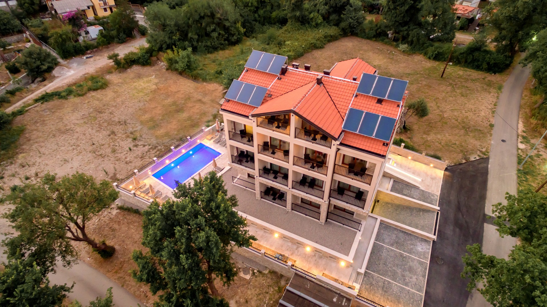 U ponudi imamo trinaest smještajnih jedinica ukupnog kapaciteta za trideset šest osoba i sa mogućnošću dodatnih ležajeva za djecu. Smještajne jedinice čine šest dvokrevetnih studija, dva trokrevetna studija, tri apartmana sa jednom spavaćom sobom sa pogledom na bazen i dva apartmana sa jednom spavaćom sobom sa pogledom na more u potkrovlju. Gostima je na raspolaganju upotreba bazena na otvorenom sa ležaljkama i privatni parking.