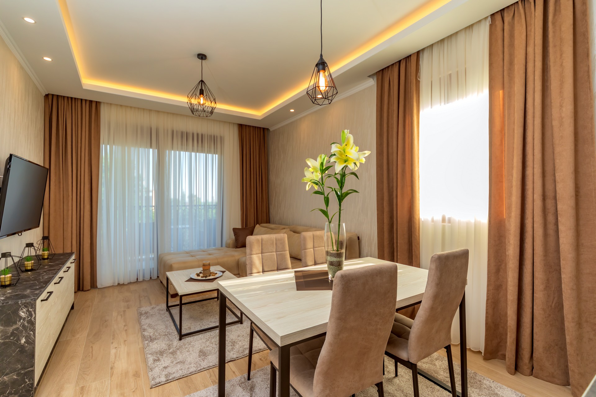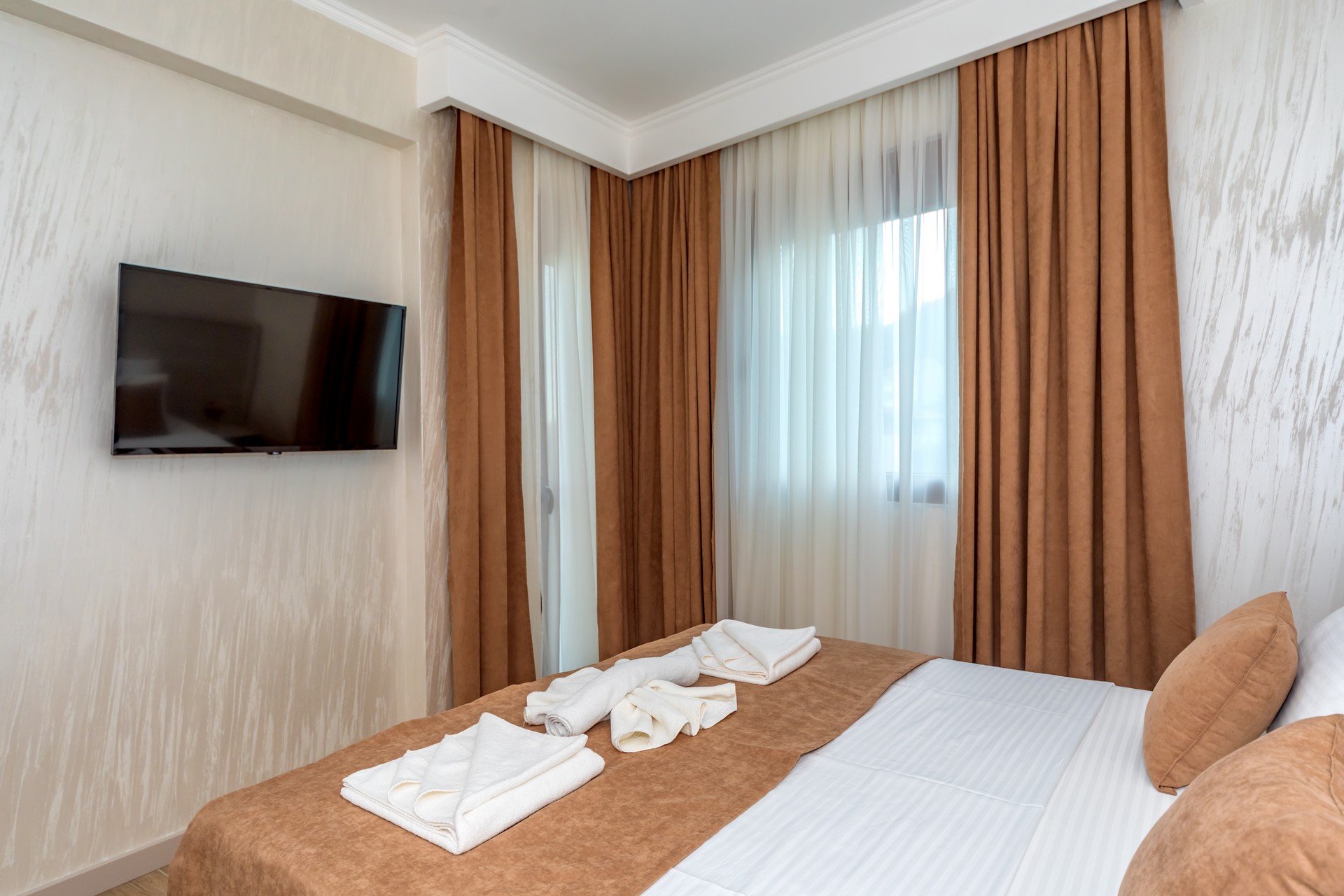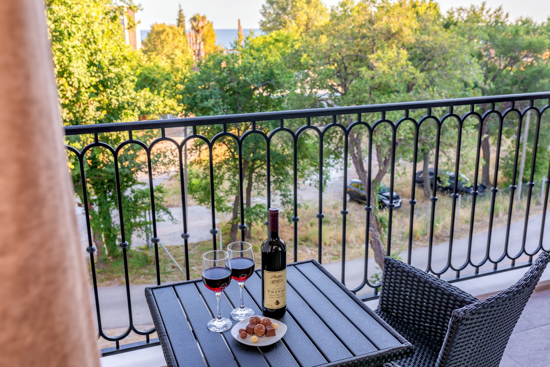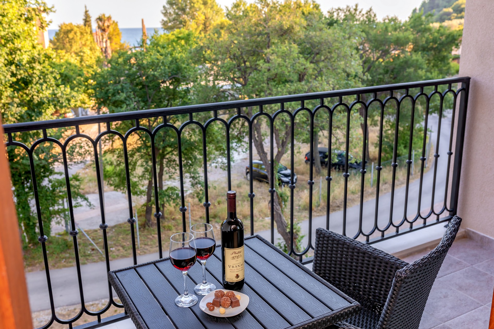 Apartman sa jednom spavaćom sobom sa balkonom je kapaciteta za četiri osobe. U ponudi imamo tri smještajne jedinice. Nalaze se na prizemlju, prvom i drugom spratu i svi imaju balkone sa pogledom na bazen. Jedinica sadrži spavaću sobu sa francuskim ležajem i sofu za dvije osobe u dnevnom boravku, sa mogućnošću dodatnog krevetića za djecu. Kuhinja je kompletno opremljena sa trpezarijskim stolom i stolicama, pločom za kuvanje, rernom, kuvalom za vodu, kuhinjskim priborom, tosterom i frižiderom. Dječija stolica (na upit) i pegla/daska za peglanje su dostupni. U kupatilu se nalazi tuš kabina, fen, šamponi, kupke i bade mantil. Apartman je klimatizovan, sa dvije klime u spavaćoj sobi i dnevnom boravku a gostima su na raspolaganju bežični internet i dva televizora sa kablovskim kanalima. Kvadratura: 44m2.
