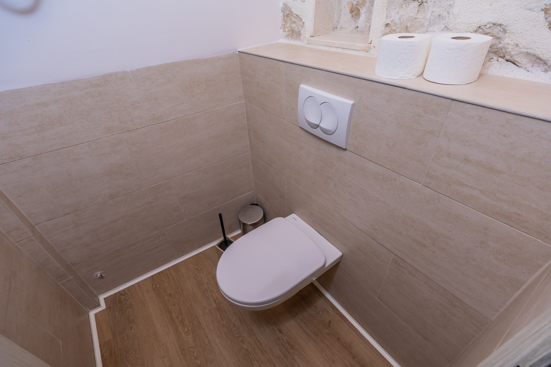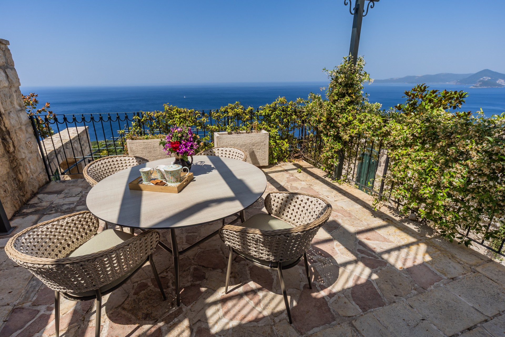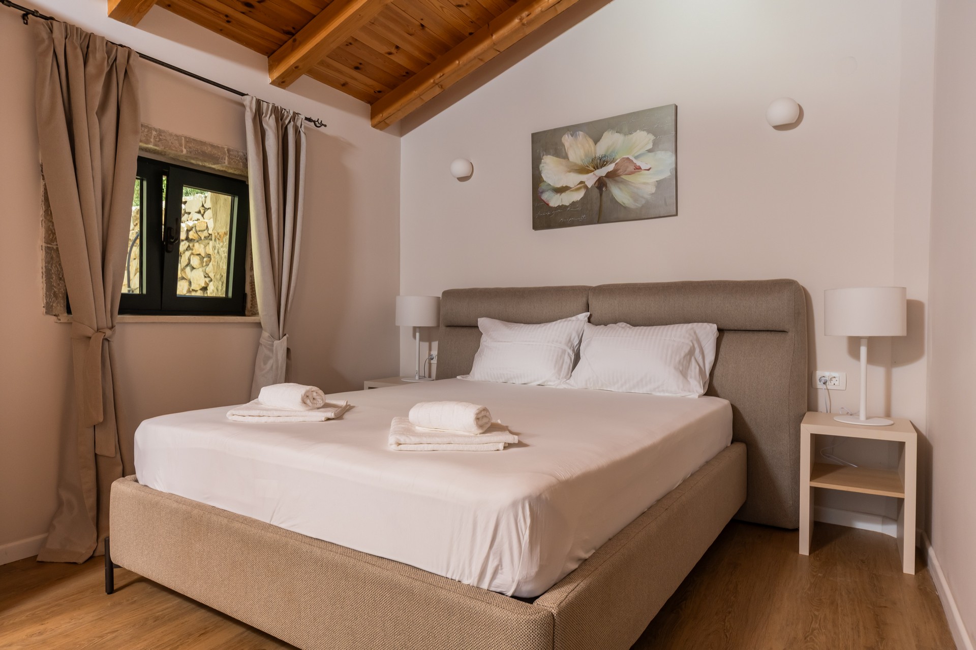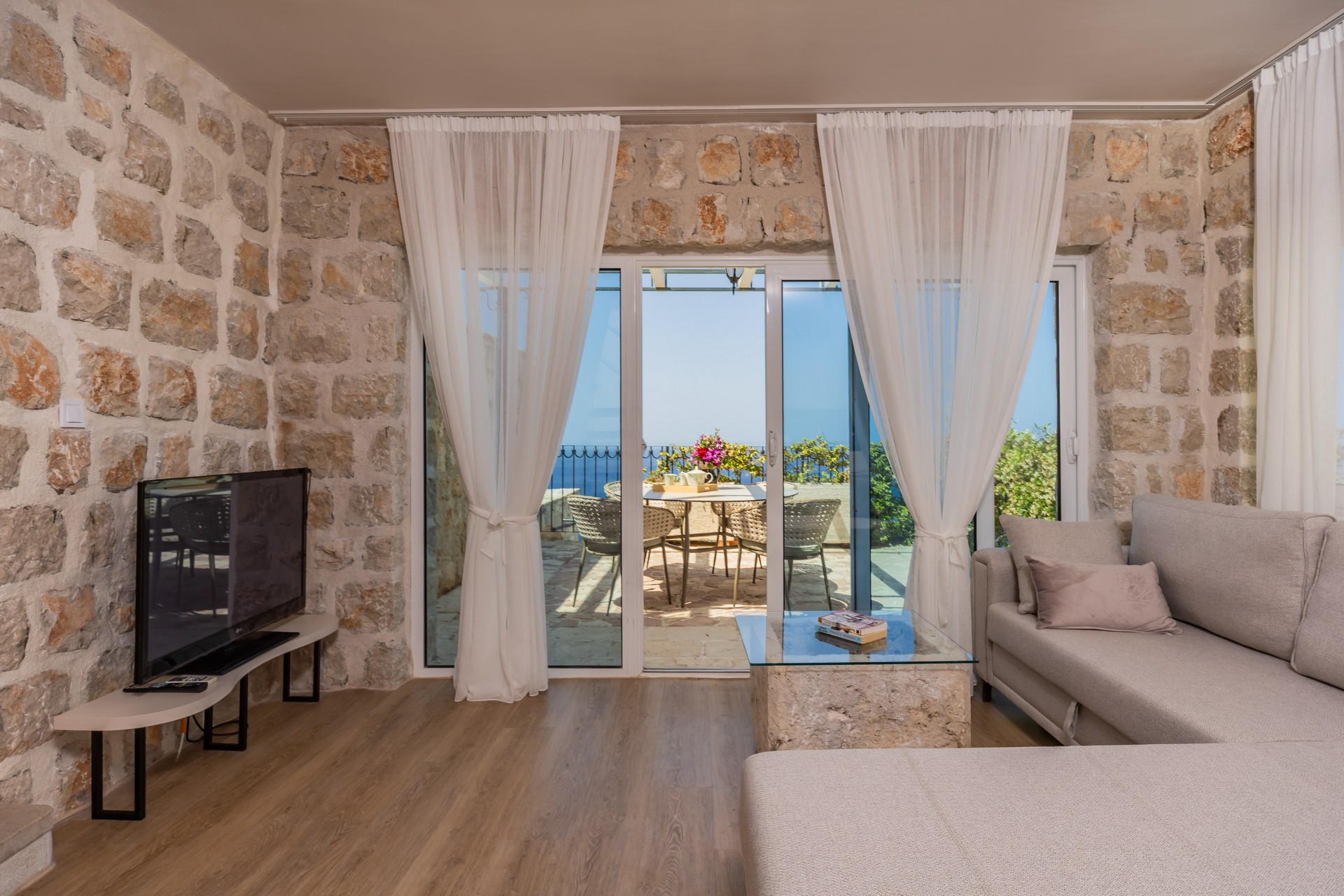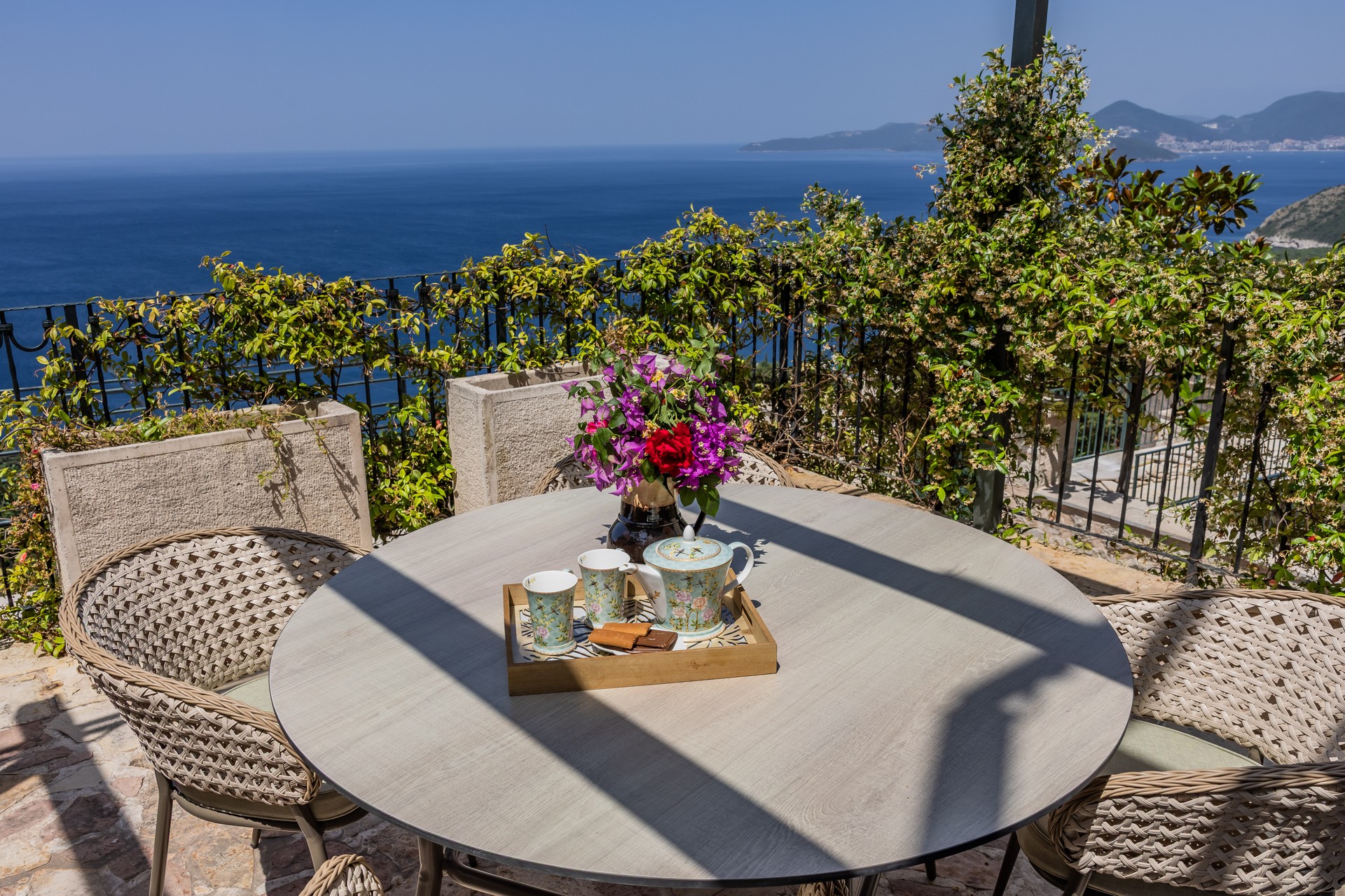 Dupleks apartman je kapaciteta za četiri osobe. Nalazi se na dva nivoa na četvrtom i petom spratu, koja imaju balkone sa predivnim pogledom na more. Prvi nivo je povezan sa drugim unutrašnjim stepenicama. Na prvom nivou se nalazi kuhinja sa trpezarijom i dnevna soba sa sofom na razvlačenje. Na drugom nivou se nalazi francuski ležaj i sofa za sjedenje. Oba nivoa posjeduju wc sa tuš kabinom. Gostima su na raspolaganju zajednički bazen sa ležaljkama i privatni parking. Kuhinja je opremljena sa stolom i stolicama, pločom za kuvanje, kuvalom za vodu, rernom ,kuhinjskim priborom, frižiderom sa zamrzivačem, tosterom, mikrotalasnom pećnicom, kafe aparatom i mašinom za sudje. Gostima su dostupni kupatilo sa tuš kabinom, mašina za pranje veša, fen za kosu, pegla i daska za peglanje. Dupleks je klimatizovan, a gosti imaju pristup bežičnom internetu i televizoru sa kablovskim kanalima. A la carte restoran je dostupan svim gostima rezorta uz rezervaciju. Kvadratura: 95m2