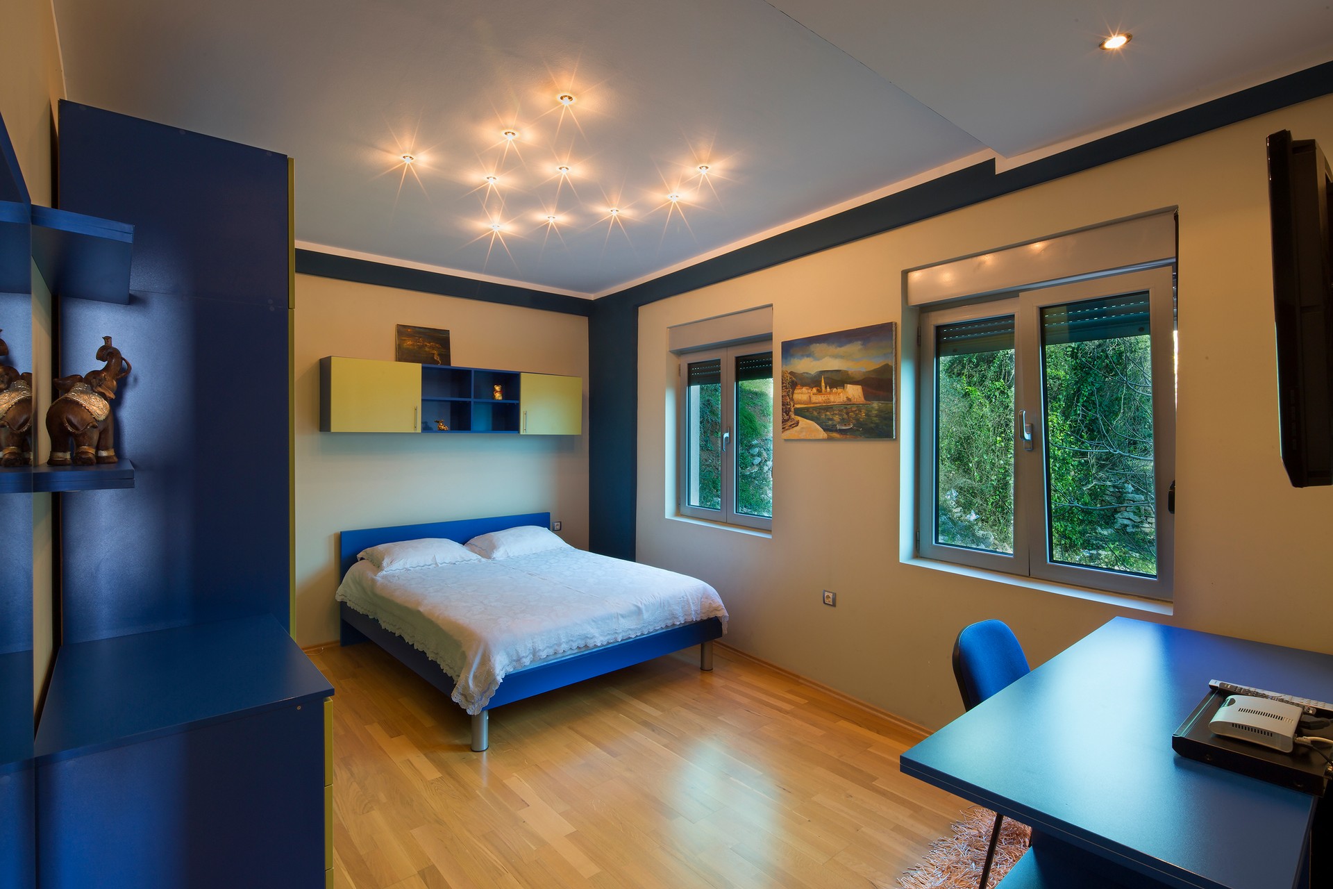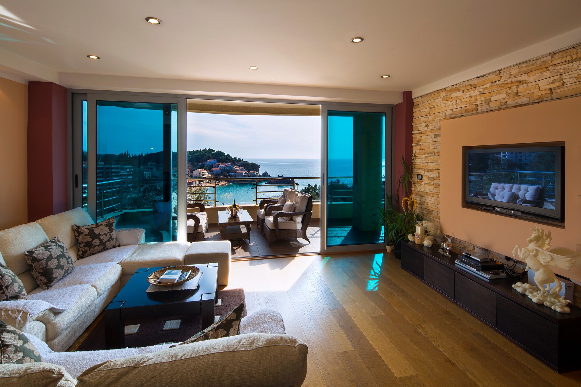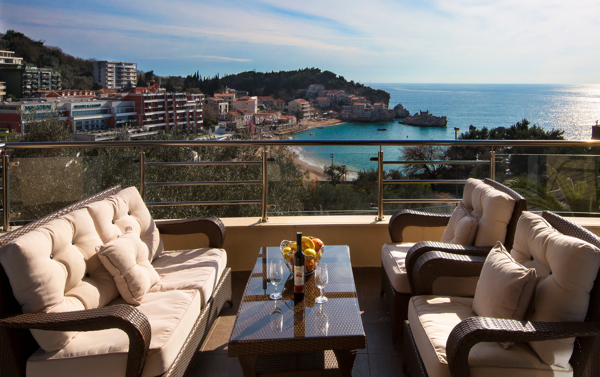 Smješteni smo tri minuta hoda od lokalne plaže, dok do prekrasne plaže Kamenovo možete stići u deset minuta lagane šetnje. Prepustite se najljepšoj šetnji obalom kroz šumu do legendarnog ostrva Sveti Stefan i stvorite nezaboravne trenutke koji će vas pratiti zauvijek s ovog jedinstvenog odredišta. U ponudi imamo trinaest smještajnih jedinica ukupnog kapaciteta od pedeset četiri mjesta sa mogućnošću dodatnih ležajeva za djecu. Smještajne jedinice čine jedan studio i duplex apartman sa dijeljenom terasom, deset apartmana sa jednom spavaćom sobom od kojih većina ima pogled na more i dvosobni apartman sa pogledom na more.